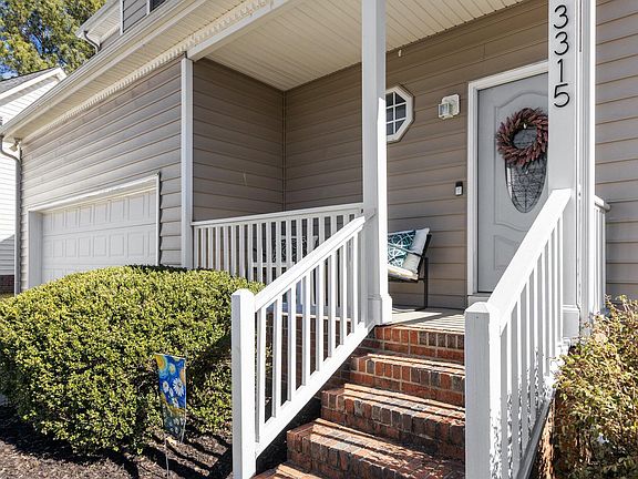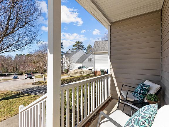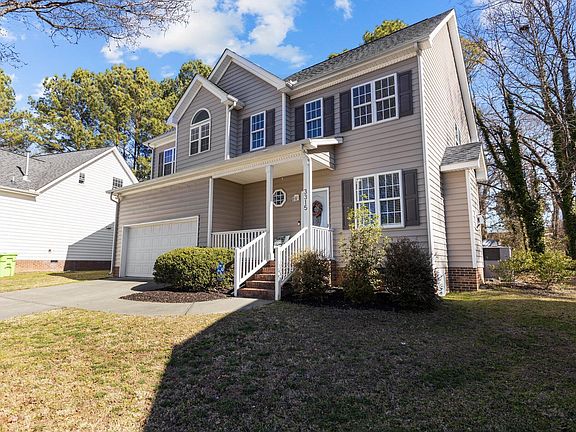 This meticulously maintained and stunning 3-bedroom, 2 1/2 bath home, nestled on a peaceful cul-de-sac and near Downtown Raleigh (13-minute drive), is a true gem. The inviting living room features a 2-story foyer, vaulted ceilings, and a cozy gas fireplace, providing a warm and welcoming atmosphere with ample natural light. The first level boasts beautiful low-maintenance luxury vinyl flooring, a spacious dining room with backyard views, and a modern kitchen with quartz countertops and updated appliances. A convenient powder room and a 2-car garage add to the functionality of the space. Upstairs, the primary suite impresses with vaulted ceilings, an ensuite bathroom, and a walk-in closet, while two additional generously sized bedrooms with a shared bathroom. Enjoy the charm of the front porch, breathtaking sunsets, and the serenity of the flat, private rear yard. Notable upgrades include a newer roof, kitchen appliances, HVAC, and water heater, all replaced in 2020, ensuring both style and efficiency in this delightful home. Plus, its prime location just steps away from the community pool adds to the appeal of this property.