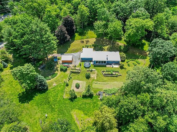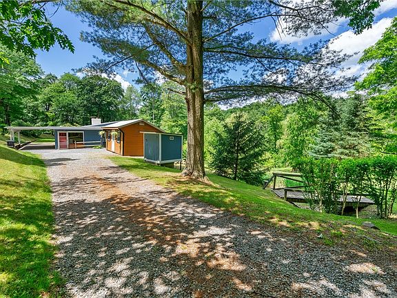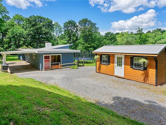 Nestled on six (6) acres with convenient access to North Park, this one-level cozy, contemporary ranch embraces the outdoors. Currently a hobby farm, the possibilities are endless—imagine creating your dream home with rolling meadows and mature woods! The living room offers rustic elegance enhanced by breathtaking views from a wall of windows and features an exposed wood beam ceiling, fireplace and patio access. A hallway leads to three bedrooms, a full bath, and a large laundry/utility room. In the kitchen, white cabinets, stainless appliances, and granite counters provide style and function. From the driveway, enter the family/multi-purpose room with newer laminate flooring and access to a half bath. For outdoor needs, there is a large, newer storage shed and other outbuildings.