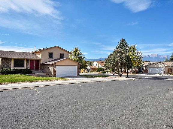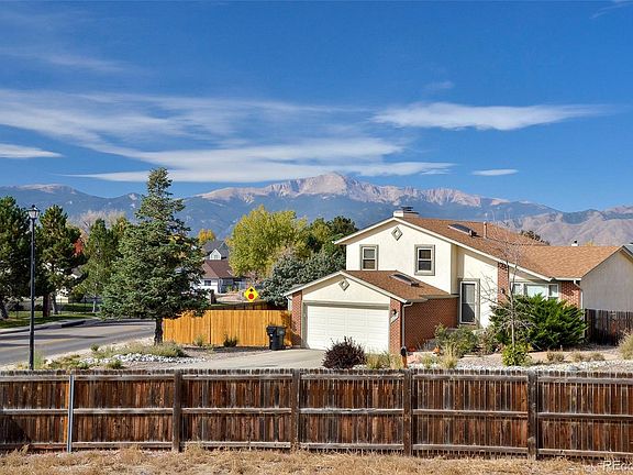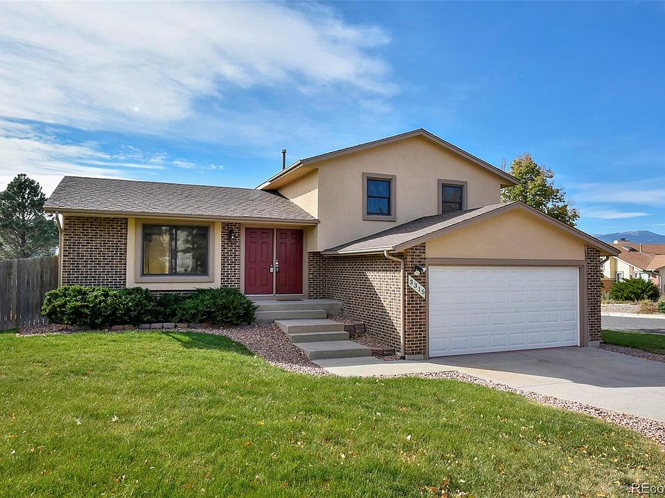 IMMACULATE 4 level home in Academy School District #20 on huge corner lot with stunning mountain views and new stucco exterior. Main level includes laminate wood flooring, large living room, formal dining room with walk-out to the deck and the large kitchen that opens to the lower level family room which includes another walk-out and a fireplace. Lower level also includes laundry room, garage access and a half bath for guests. Upper level has 3 bedrooms. Master bedroom includes an attached master bathroom. The fully finished basement includes large family room and 4th bedroom with its own private 3/4 bath. HUGE backyard and newly refinished deck. Major mechanical items are updated. New furnace and Air Conditioning was installed 2015. New interior paint. Brand new carpet. Move in Ready. D20 Schools, Pioneer Elementary, Timberview Middle, Liberty High School