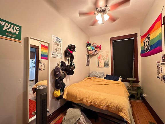 Spacious bedroomsNewer bathroomGreat closet spaceNewer eat in kitchenCeiling fanCentral heat and airHardwood floors