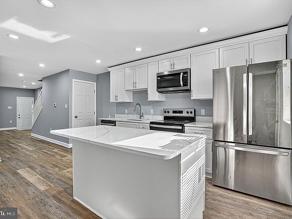 Discover a meticulously renovated residence where contemporary style meets everyday functionality. This property has been thoughtfully redesigned to offer an open-concept, modern living experience with high-end finishes throughout. From the striking kitchen to the designer bathrooms and versatile lower level, every detail has been curated for comfort and aesthetic appeal. The main floor is an inviting showcase of open-concept living, featuring chic, durable wood-look flooring that spans the entire space. The heart of the home boasts brilliant white Shaker cabinetry, pristine white quartz countertops, and a suite of sleek stainless steel appliances. A central kitchen island with clean lines offers a perfect spot for casual dining and prep work, making entertaining a breeze. The main living area is awash in a crisp, light gray palette with recessed lighting and bright white trim, creating a modern canvas for your furnishings. A staircase with a white balustrade and plush carpet leads to the upper level. Step out from the main level to a charming private wooden deck, offering a perfect retreat for morning coffee or outdoor dining overlooking the fenced yard. A stylish half-bath on this level is finished with a modern vanity and round mirror. The upper level is dedicated to comfort, featuring plush, high-quality carpeting in all bedrooms and hallways. Two generously sized bedrooms offer abundant natural light and ample closet space. They are designed as serene sanctuaries, continuing the clean, bright aesthetic of the main floor. The full bathrooms are a stunning highlight, featuring bespoke design with bold blue-gray subway-style tiling in a unique linen texture. Enjoy modern fixtures, sophisticated vanities, and a mix of full tubs and walk-in showers with elegant white hex-tile floors. The finished lower level includes a separate room that can function as an additional bedroom or private study. A beautifully finished full bathroom on this level features a walk-in shower with the same distinctive blue-gray tile, completing the functional and stylish lower level. This home is an exceptional opportunity to acquire a fully updated, move-in-ready property designed for the modern homeowner. You won't find anything else at this price point, don't miss your chance and schedule your showing today!