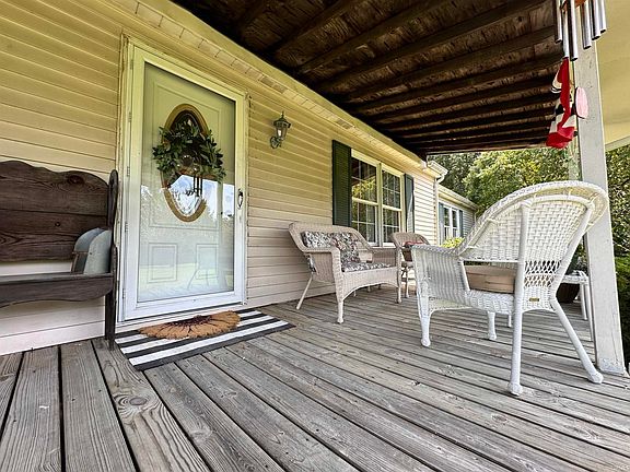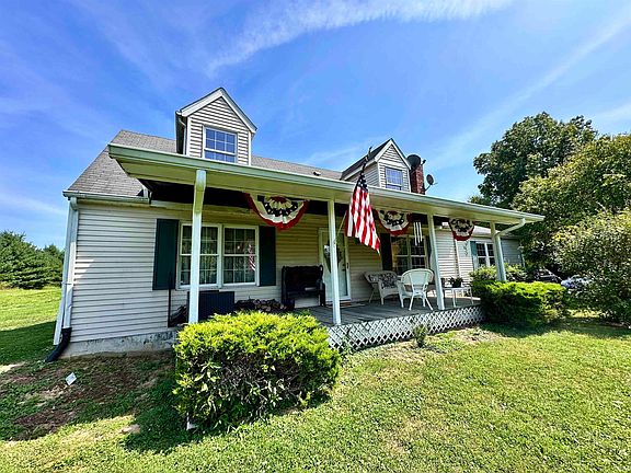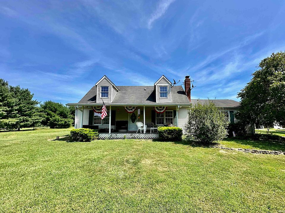 Nestled on over 6 acres of picturesque land, this charming 4-bedroom, 2-bathroom country home has been lovingly maintained by its original owner for 40 years. The moment you step onto the welcoming front porch, you'll feel right at home. Inside, the cozy great room invites you to linger, with its warm wood-burning fireplace-perfect for hanging stockings during the holidays. The spacious eat-in kitchen offers plenty of cabinets, newer stainless steel appliances, and is ideal for gathering with loved ones. Two generously sized bedrooms on the main floor provide convenience, while upstairs, two additional bedrooms and a full bath offer privacy and comfort. The home also boasts a full unfinished basement, perfect for all your storage needs or future expansion. Step outside to discover your own slice of heaven, complete with a back deck perfect for grilling or relaxing in the evenings. The expansive acreage features a pole barn, pasture, and wooded trails for adventure, making it an ideal spot for your furry friends, a small farm, or a garden. Don't miss this rare opportunity to own a piece of country paradise!