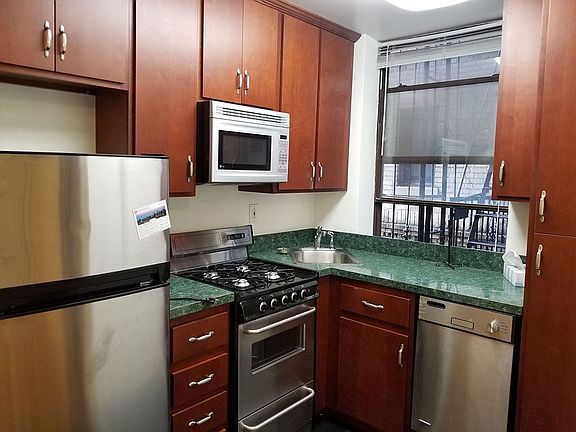 FREE 13TH MONTH ON A 1-YEAR LEASE! Super convenient, nice view, commuter's dream! Charming and cozy two-bedroom apartment conveniently located just steps to 24-hour NYC transportation, shops and restaurants. Renovated kitchen has wood cabinets and stainless appliances including dishwasher and built-in microwave. Bathroom has been tastefully updated; apartment has beautiful hardwood floors throughout. Bright eastern exposure with NYC skyline glittering above the treetops! Heat and hot water included in rent. Building has on-site laundry; neighborhood street parking is available to Union City residents for $5.00 lifetime registration. Pet friendly! (Just one, please.)