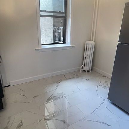 This is a great one bedroom apartment facing New York City. This quiet one bedroom apartment has been fully renovated with new living room, full bathroom and kitchen with all new stainless steel appliances. The floors are a Brazilian cherry laminated floor through out the unit except for for the Kitchen and bathroom that has polished porcelain tiles. The kitchen cabinet are new and are all white with quartz countertop which is a simulated white marble countertop without the maintenance. The heat and hot water included and provided by the building. It is situated in a well-kept building with two elevators and a buzzer for entry and security and has easy access to a laundry room in the building.