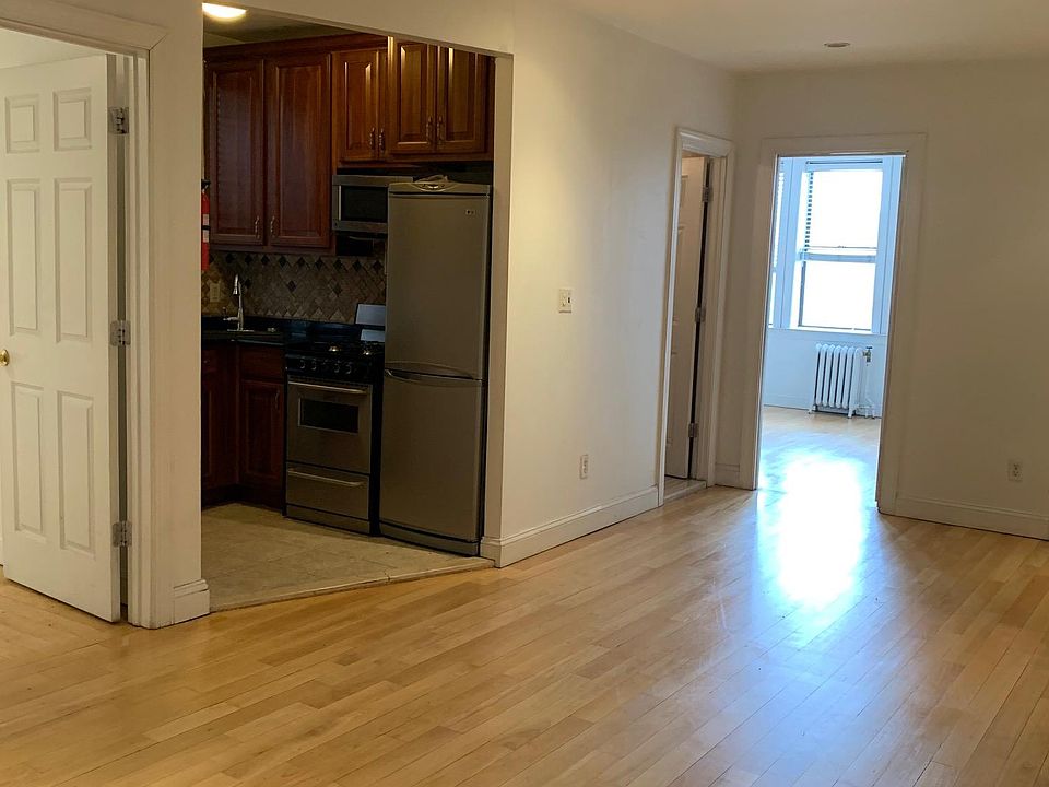 Prime location one bus stop from Port Authority. No Brokers fee!! Heating/water included. Amazing 2 Bedroom 1 Bath with Manhattan sky view from both bedrooms!! Hardwood flooring, updated kitchen with S/S appliances, and fully tiled bathroom. W/D in building. Onsite super. Available May 15. 1 year.