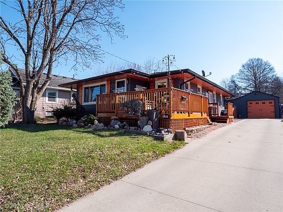 Fantastic 3BR 2BA home great garage & fenced yard! Exterior recently upgraded: new roof, siding & windows. Oversized living room has coved ceiling & stylish LVP flooring. Open concept dining area is perfect for entertaining guests or enjoying a family dinner. Updated kitchen complete with stainless steel appliance, built-in fridge, & waterline directly to coffee machine. Breakfast nook is perfect for your morning coffee or a quick bite. Primary BR is spacious & comfortable, featuring amazing close access to the outdoor spaces. Theatre room boasts built-in dry bar, perfect for hosting movie nights or game day. Bonus: 2 non-conforming bedrooms one of which includes an egress window to be included with the sale of the home. 1.5 car garage includes built-in cabinets & all-new electrical with LED lighting—the perfect space for a workshop & storage. Built-on shed provides even more storage space and has 2 entrances. Beautiful outdoor spaces, landscaping completely updated, plus new front deck & whole house outdoor lighting package. Backyard is fully fenced with covered brick patio, gazebo, patio, & more--the perfect place to relax & enjoy the outdoors! Convenient access to downtown, airport, Hy-Vee & Wakonda Gold Club.  Enjoy all this home has to offer!  13 Mo HWA Platinum Home Warranty included!
