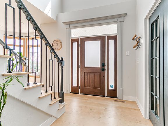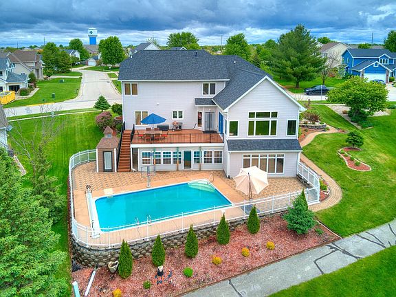 This retreat of a home spans approximately 4,596 square feet of modern crafted living space, complemented by a backyard oasis featuring a refreshing pool and a sprawling paver patio. Situated on a generous 12,756 square-foot walk-out lot, this residence offers a seamless blend of luxury and functionality. It provides 4 bathrooms and 4 bedrooms, with the potential for a 5th bedroom on the lower level, this home presents versatile living options. The lower level, currently utilized as fabulous guest quarters, simply awaits the addition of a closet to transform into a fifth bedroom. Step inside to discover updated bamboo floors adorning the main and upper levels, leading to an awe-inspiring addition off the living room featuring vaulted ceilings. The kitchen has granite countertops, dual center islands, sleek updated black stainless steel appliances, and a refreshed sink and faucet. The primary suite is complete with a spacious walk-in closet and a luxurious full bath. Additional highlights include an extensive lighting system and a cozy gas fireplace surrounded by built-ins. The garage doors and openers have been updated, and there is a new front door with sidelight windows and updated interior doors. Additional recent upgrades include a new roof installed in 2023, along with new gutters and downspouts, a new pool pump in '23, and a new pool liner in '21. The lower level features a designated theater room and a four-season pool room. Step outside to the all-weather-proof deck, offering panoramic views of the surrounding greenspace and a perfect vantage point for enjoying picturesque sunsets.