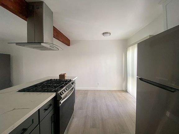 This inviting first-floor apartment features vinyl flooring throughout, ceiling fans in every room, stainless steel kitchen appliances including a refrigerator, oven, range, and dishwasher with a range hood, plus washer-dryer included. You'll love the modern bathroom accents, convenient in-unit laundry, and unbeatable location just minutes from SoFi Stadium, The Forum, Downtown Inglewood, and local shopping, parks, and dining.