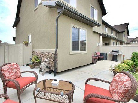 Great two-story End Unit in modern Stone Creek Canyon Community. 3 Bedrooms, 2 1/2 bathrooms. High grade appliances plus in-house vacuum system and front loading washer and dryer included. Living room with wall TV unit (included) above gas fireplace. Kitchen offers plenty of cabinet and counter space with an eat-at bar. Dining area opens to nicely landscaped private back yard (no neighbors) with patio and gas grill hook-up. Master bedroom has high ceiling and large walk-in closet. Other bedrooms are spacious with nice closet space. Three car driveway is one of few (perhaps only one in the community) and additional guest parking is very nearby. Two car garage with suitable length for an SUV. LOW MAINTENANCE Living with HOA provisions that include snow removal, yard care, secondary water, sewer, trash, and use of pool, as well as covering most or all required homeowners insurance. Close to Hill AFB and shopping with easy access to I-15. In a growing market with value increases projected, this has been a very reliable home with virtually no required repairs and would make a great home or rental property. Appraisals and Inspection reports have ranged from 1,864 to 1,884 square feet. Available for move in after August 15th, with offers being immediately accepted from those with loan pre-approval; Please contact Ken at 850-685-3019 or kwhelchel30gmail.com . Will consider nominal buyers agent fee. Thanks!