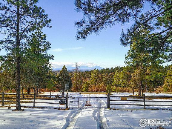 A beautiful 1061 square foot log home sitting on 35 acres consisting of 2 bedrooms, 2 bathrooms and a detached 2 car garage with an above apartment offering an additional 672 sqft 1 bedroom, 1 bathroom, with living space and kitchen-net. Well maintain gravel roads throughout the subdivision and just a short distance to the Historic Town of Trinidad, CO. Mountain living at its finest with all of the amenities found by being close to the city. This property is unique as Sante Fe Trail Ranch is one of the few 35 acre subdivisions that has the convenience of municipal water. A fire-wise community with breathtaking panoramic mountain views, meadows, tall timbered trees, and rock outcroppings. Located just off I-25 this property makes for an easy commute to New Mexico, Trinidad, Denver and DIA.