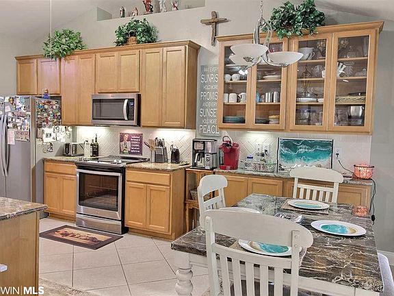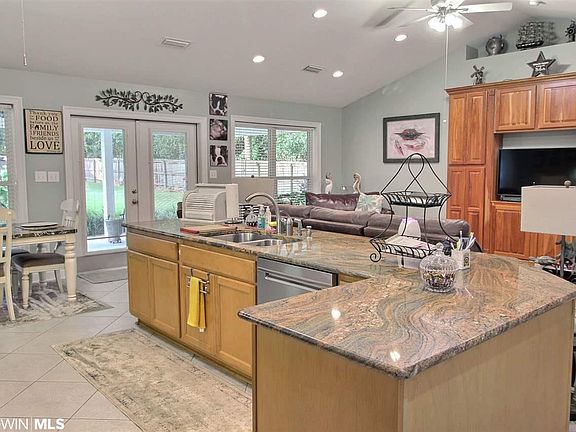 Beautiful custom built home on a large lot with an 24 x 24 garage in the fenced in back yard. This coastal home has deeded access to 15' waterfront recreation park on Perdido Bay. Open floor plan with built ins and covered patio covered in flowering plants. The home has recessed lighting throughout home with ceiling fans and crown molding in every room. There is a hobby room with lots of storage with an inlaid tile design in floor. The master bath has double sinks and a large shower and a walk in closet. The kitchen has granite counter tops and the stainless appliances are only 3 years old. There is also a coffee bar with glass front cabinets in kitchen. The laundry room has an additional double door pantry, laundry sink and cabinets above your washer and dryer. This home is only minutes to the bay and the white sandy beaches of the Gulf of Mexico. Call your Realtor to look at this beautiful home.