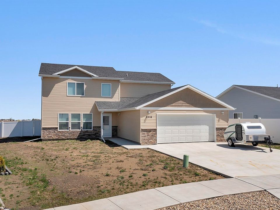 This stunning Two-Story Home boasts 2,240 square feet of living space and is perfect for those who love open concept living. As soon as you walk in the door, you'll be greeted by a spacious and inviting Living Room with an electric fireplace, perfect for cozy nights in. The Living Room flows seamlessly into the Kitchen, which features a large Island and a Pantry, providing great storage and counter space. The Dining Room is adjacent to the Kitchen and features a sliding glass door that leads out to the backyard patio, making it the perfect spot for outdoor dining and entertaining. The Master Bedroom on the main floor is generously sized and features plush carpeting and an Ensuite 3/4 Bathroom for added privacy and convenience. The Laundry Room is located just off the Garage, making it easy to keep the main living area tidy and organized. Upstairs, you'll find a spacious Family Room with hard surface flooring, providing the perfect space for a game room, home office, or movie theater. The second Master Bedroom on the upper level features carpeting and an Ensuite 3/4 Bathroom, providing a private space for guests or family members. There are also Two additional Bedrooms on the upper level, both featuring hard surface flooring with access to a 3/4 Bathroom in the hallway for added convenience. The oversized Double Stall Garage, measuring 24x28 in size, provides plenty of space for vehicles and storage. Finally, the Backyard is fully fenced, providing a safe and secure space for children and pets to play. With its spacious living areas, cozy bedrooms, and convenient amenities, this two-story home is the perfect place to call home. Call your Realtor today to schedule a private showing!