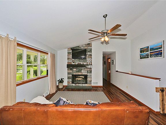 This gorgeous maintenance free ranch has 3 bedroom, 2 1/2 bath, first floor laundry, beautiful bamboo flooring, remodeled baths, and 2 fireplaces. The vaulted living room has a beautiful wood burning fireplace. The large lower level has a finished family room with a gas fireplace, egress window, 1/2 bath and a large walk-in finished storage closet. This home has a deck right off the kitchen with a retractable awning that overlooks approximately half acre with a 12 x 16 garden shed with electric. This home also has a insulated garage with its own heat, air and digital thermostat. Excellent location convenient to interstate, shopping, employers, train, walking distance to elementary school and parks.
