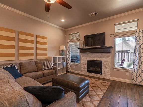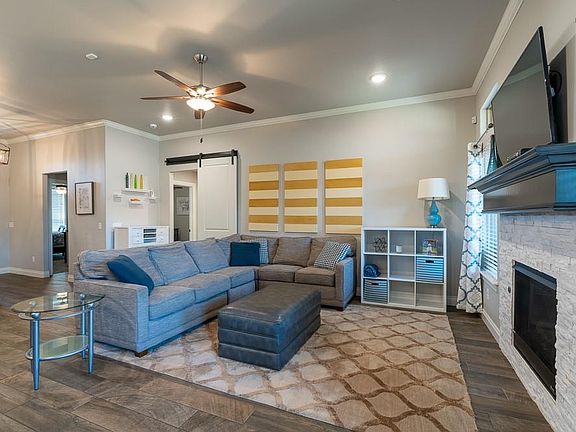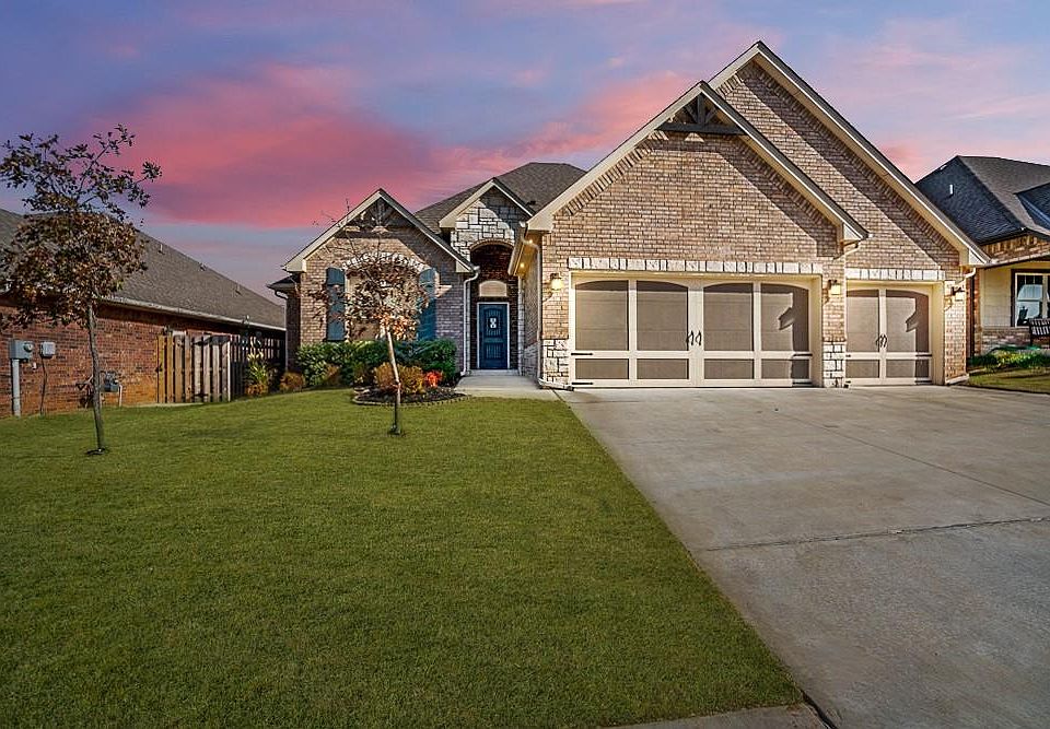 Better than new in every way! So much detail including unique fixtures, bedrooms are great size, and granite countertops throughout! Spacious living room with windows on either side of the fireplace allowing natural light to flood the room. Kitchen showcases double ovens, 5 burner gas stove, and tons of storage space! Primary bedroom features a tray ceiling, and private en-suite complete with 2 separate vanities, walk in shower, and separate tub, and walk in closet. Additional living area upstairs with bathroom as well, this space is perfect for entertainment, and getting together with friends and family. Sit outside under the covered patio and enjoy a morning coffee or a beautiful Oklahoma sunset. Dont miss your chance to make this home yours!