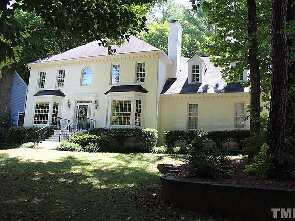 Elegance abounds in this stately brick front home on CORNER CUL DE SAC lot! Hardwoods down & up. Spacious kitchen w white cabs, kitchen island, pantry, & granite countertops. Spacious family room w brick fireplace. Dining room w tray ceiling. Large master w hardwoods & walk-in closets. HUGE BONUS ROOM! Cozy office/playroom on third floor. Plenty of walk-in storage space. Sprawling screened porch overlooks party deck and private back yard. Side load garage entry. Close to shopping, RTP, and inner beltline!