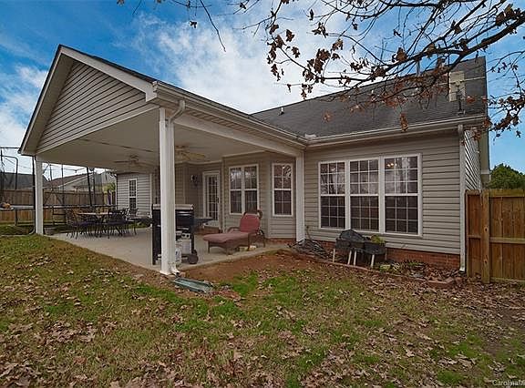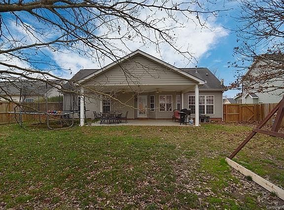 The Early Bird will get this house! Great location for this 3 bedroom/2 bath/2 car garage home in Indian Trail. Fully fenced back yard and a large covered patio make this house extra appealing. Lots of fresh paint and great split-floorplan. A built-in bench in the breakfast room for seating. Solid surface countertops. The dining room is currently used as an office/schoolroom. Large master suite with garden tub and separate shower, double sinks and walk-in closet. Gas-log fireplace and vaulted ceiling in the great room. Don't miss out and schedule your showing today!