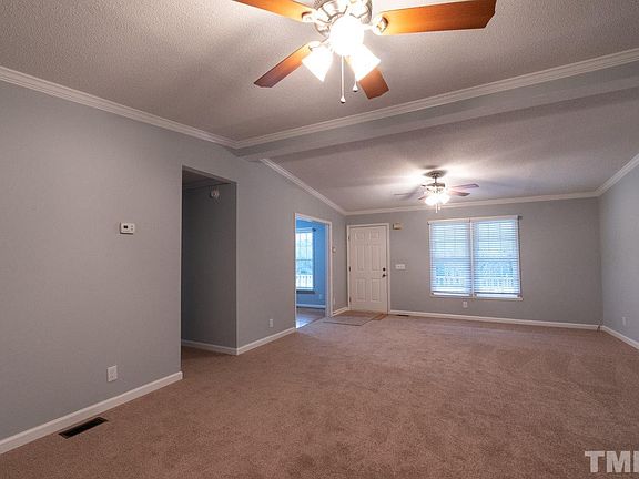 Large open lot with fenced in back yard. Conveniently located to Rock Quarry Rd. Large covered back deck and covered front porch. New paint and carpet throughout, Plantation blinds, new light fixtures, ceiling fans and crown molding. Large laundry room with utility sink and separate entrance. Spacious kitchen with many cabinets. Walk-in closets in all three bedrooms. Spacious master and master bath.