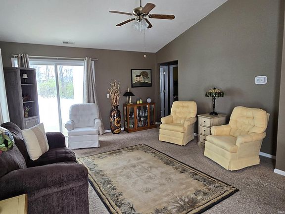 Looking for a more simple lifestyle? Cozy up to this darling 2 bedroom, 2 full bath condo tucked away on a quiet cul-de-sac on Kokomo’s convenient Southside. Vaulted ceiling Great Room with sliding doors to patio. Entry with tile floor & guest closet. Fully appliance Kitchen with eating area and counter-bar. Owner’s suite features walk-in closet, bath with updated double glass door walk-in shower and double sink vanity. Stack washer/dryer included. HOA includes outdoor lawn care and snow removal included and roof fund.