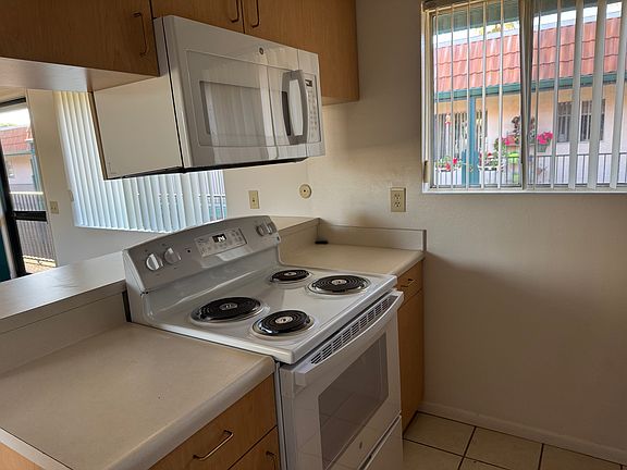 Remodeled one bed one bath apartment west of the I-5 freeway available now! Recently updated with vinyl plank flooring. Kitchen has custom cabinets, full sized refrigerator, brand new electric oven/range and large microwave. It has tiled entry, kitchen and bathroom floors. Ceiling fans in living room and bedroom. Bedroom large enough for a king sized bed, and has a large walk-in closet. This apartment comes with a one car enclosed garage including a storage cupboard. Complex of 46 apartments has 2 pools and a jacuzzi spa, and two laundry rooms with coin-operated machines for your convenience. Located across the street from the Pine Avenue Community Park, we are located about 2-1/2 blocks south of Carlsbad Village Drive on Harding Street. Apartment is in close proximity to Carlsbad Village, Carlsbad Beaches and the Coaster Station. Sorry, no pets. Non-smoking property. One year lease. Security deposit is $1,200 with good credit ($1,800 with credit score between 600-699). To Qualify: Applicants must show proof of income (collective) in the amount of 2.5 times the rent. All applicants must have a minimum credit score of 600. Each person 18 years and over must apply. Tours will be conducted by Resident Manager Cara. Property Address: 3316 Harding Street Apt #21, Carlsbad, CA 92008 Tenant responsible for electricity. Owner responsible for water, sewer, trash, recycling and green waste. Non-smoking property. No Pets allowed. One year lease. Security deposit $1,200 with credit 700+ ($1,800 with credit score between 600-699). To Qualify: Applicants must show proof of income (collective) in the amount of 2.5 times the rent. All applicants must have a minimum credit score of 600. Each person 18 years and over must complete a Zillow rental application ($35 fee per applicant).