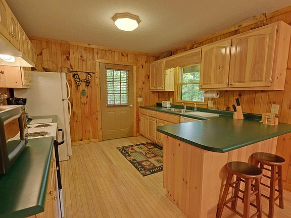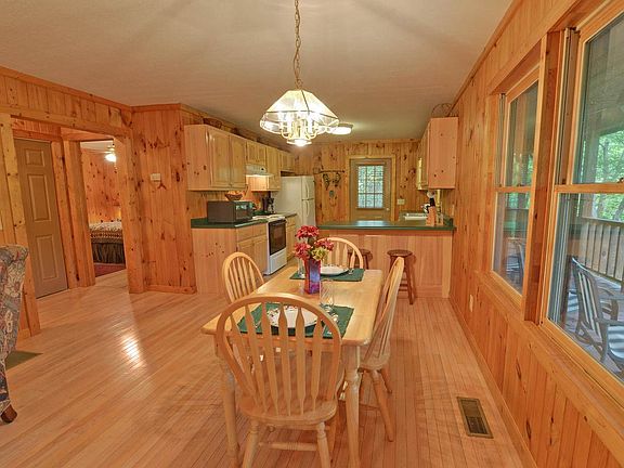 RUSHING CREEKFRONTAGE, TROUT OUT YOUR BACK DOOR, HEAR THE SOUND OF CREEK ! IMMACULATE MAINTANIED RENTAL CABIN FULLY FURNISHED READY FOR YOU TO ENJOY AND KEEP ON RENTAL PROGRAM FOR INCOME IF YOU WANT ! ROCK ON THE COVERED PORCH OVERLOOKING THE CREEK AND WITH STEPS TO CREEKSIDE . PRIVATE SETTING ,CLOSE TO TOWN , PEACEFUL FEELING FROM THE SOUNDS OF CREEK.