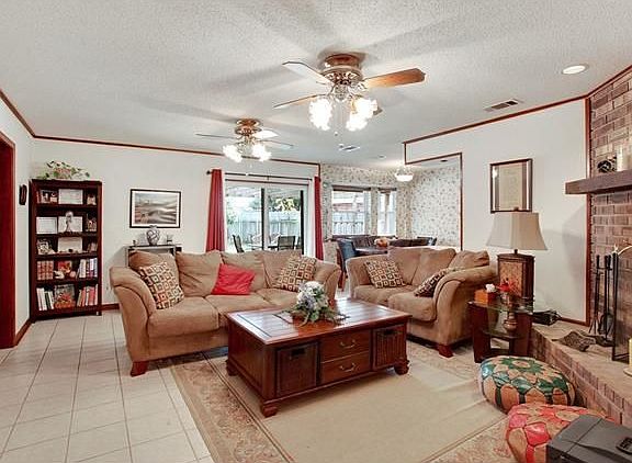 Open and spacious 4 bedrooms and 2 baths, corner brick fireplace in den, formal liv/din room, dbl insul. windows and sliding den door mostly ceramic and porcelin tile thru out, jetted tub, separate dressing area in master, large closets, large galley style kitchen with bay window in breakfast area. Double garage, fenced yard and wood deck, 2 ovens, crown molding. Lifetime warranty on windows.