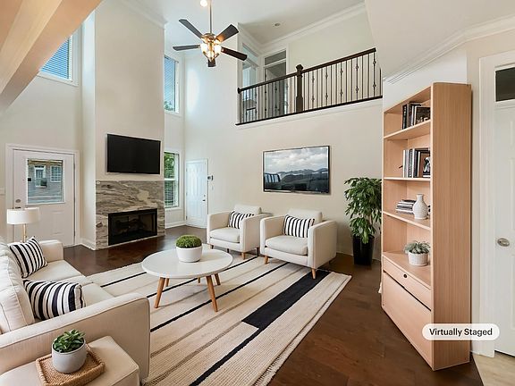 100-Day Home Warranty coverage available at closing. Seller may consider buyer concessions if made in an offer. Check out this stunner! A fireplace and a soft neutral color palette create with fresh paint for the living area. You'll love cooking in this kitchen, complete with a spacious center island and a sleek backsplash. The primary bathroom is fully equipped with a separate tub and shower, double sinks, and plenty of under sink storage. The backyard is the perfect spot to kick back, and the included sitting area is great. Don't wait! Make this beautiful home yours.This home has been virtually staged to illustrate its potential.