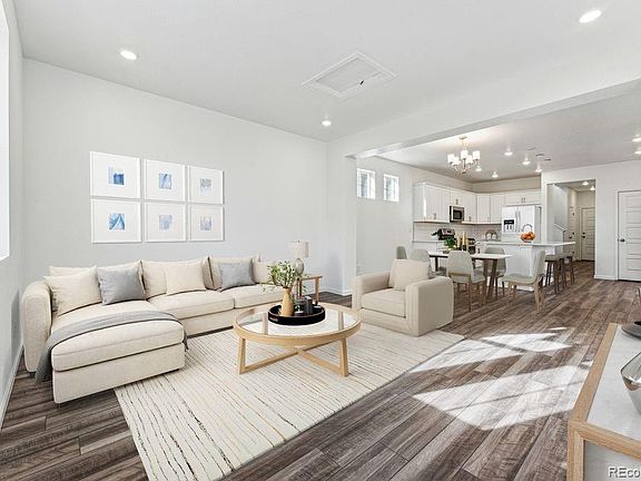 MLS#9507187 Ready Now! Welcome to the Meridian at Aurora Highlands, a thoughtfully designed home with a spacious great room that seamlessly flows into the dining area and kitchen, creating an ideal space for gatherings. Down the hall, a private study with ample windows offers a bright and airy workspace. Opposite the study, a functional entryway off the garage provides a versatile space where you can add cabinets, a bench, or a coat rack to suit your style and needs. Upstairs, the home features a generously sized primary suite, three additional bedrooms, a full bath, and a conveniently located laundry room for ultimate comfort and convenience. Structural options added include: glass doors to study, loft, and patio.