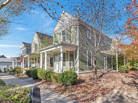 Welcome to NEW TOWN! This 2-story cottage with covered front porch is nestled in tree-lined courtyard with detached 2-car garage. The open floor plan boasts a great room with tons of natural light with 9-ft main level ceilings. Eat-in kitchen with wood cabinets and newer flooring through out the main level. Step out to Patio with a pergola to enjoy all the fall colors. Upstairs there are 2 Master Suites each with tub/shower combo and ceiling fans. Convenient 2nd Floor Laundry near the bedrooms. Upgrades include Hardy Board Siding, Gutter Guards and Tankless Hot Water Heater are a huge plus! Enjoy all that New Town has to offer: scenic parks, quaint shops, restaurants, playground, amphitheater events/concerts, stocked lakes for fishing/swimming/boating, and all within walking distance. Easy access to Highways 94/370 in AWARD-WINNING Orchard Farm School District.