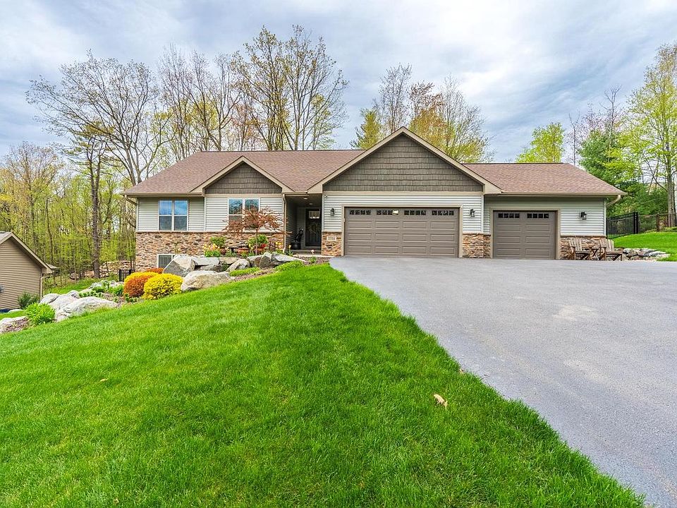 Welcome to the home that you have been waiting for, within walking distance to the Aspirus Hospital and Marshfield Clinic. This beautiful home has everything you desire and more! A one owner home with an incredible amount of upgrades and customization that the next owner will truly appreciate as the sellers are now relocating out of state for a job. Upon approach of this 5 year old home, you'll be greeted by a wide blacktop driveway for parking convenience and a 3+ car heated garage that measures 21 feet deep x just under 39 feet wide and is insulated and drywalled with insulated & WiFi enabled garage doors. If you A covered front porch leads into a spacious foyer with tile laid in an upgraded, brick set formation. This stunning single-story residence features real hardwood floors in the open concept living space, offering both elegance and durability complete with a real wood-burning quad fireplace, perfect for energy savings & cozy evenings on this floor to ceiling stone fireplace with protective tile in front on the floor.,Levelor blinds are found on various windows to add shade and privacy to the space. The gourmet kitchen is a chef's delight, boasting a porcelain enameled cast iron sink & a 9 feet long and 5 feet wide quartz counter island with 8 person seating and cabinetry underneath, all with soft close drawers and doors. Four overhead pendant lights and extra can lights make this working space well lit and efficient. High end appliances showcase a Wolf induction cooktop with a sleek design to allow for a drawer under the cooktop. Ease of cooking is found with the pot filler behind the stove from the tile backsplash and an overhead exhaust venting outside for a clean cooking experience. A hidden spice rack holds all your seasonings at your fingertips. The microwave has a steam cook option and the convection oven offers the best baking design. An upgraded dishwasher offers quiet cycles so you can enjoy conversations easily. A butler pantry also features soft close cabinetry, complete with a sink with low divide with garbage disposal, wine rack, beverage fridge, plate racks, and plenty of storage space for all your culinary needs. French doors off the open concept living lead to a deck with a natural gas line for easy grill hookup and ambiance lights overhead. A 5 foot fence with an upgraded black aesthetic wraps around to the side walk out lower level. Underground sprinklers that are metered separately and have a WiFi controlled panel keep the lawn looking fabulous. Perennials and extensive back yard drainage have been added to keep the landscape pristine. A SimpliSafe security system is included. This home offers four generously sized bedrooms, providing comfort and privacy for everyone. The primary suite boasts a trayed ceiling & a private bath with dual under mount sinks on a quartz counter, tile floor, walk-in closet, and tiled shower with accent tiles. Down the hall for added privacy, is a full bathroom with tile floor adjacent to the second and third bedroom which offers darkening curtains for daytime sleeping & upgraded solid swing closet doors. A mudroom with tile floor has lockers, a closet, quartz countertop and soft close cabinetry for great storage. Washer, dryer and Generac generator are negotiable. The house has dual zoned climate control with each floor having its own thermostat. The lower level finished family room is perfect for gatherings and entertaining, while the walk-out lower level presents an easy access for opportunity to entertain guests on the patio or let pets out from the French patio door. The fourth bedroom offers a Murphy bed that will stay. Sliding closet doors, and doors to bedroom, bath and unfinished bonus room are on order. A third bathroom with a walk-in shower, vinyl plank flooring, smart mirror & quartz counter with under mount sink is across from the fourth bedroom. A separate unfinished room next to the fourth bedroom cou