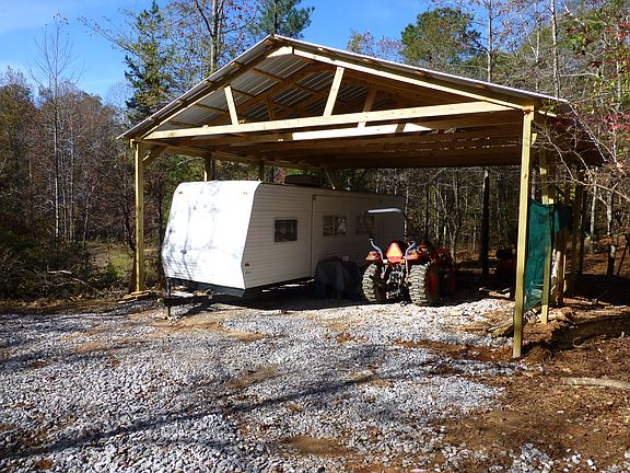 Brick and Ship Lap siding 3 Br 3 Ba ranch with 64' X 8' front porch, 40' X 6' enclosed back porch, 12' X 18' enclosed deck. attached carport, 28 X 24' detached garage, 28' X 14' wired workshop, 30' X 30' X 12' camper shed, 40' X 15' greenhouse with some geothermal heating/cooling, 3/4 acre pond, storm shelter. irrigation lines from pond, tractor shed and lots and lots of flowers.