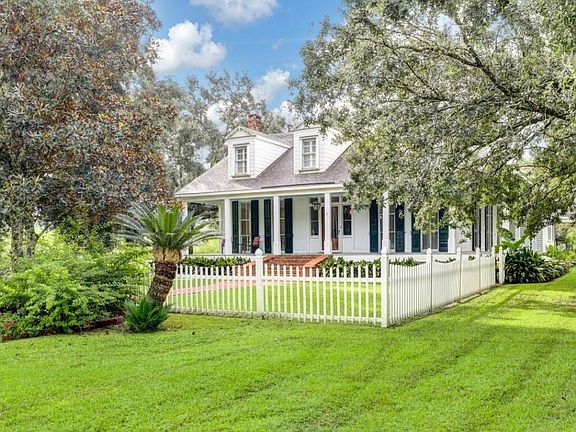 One of a kind home!!! The beautiful Live Oak Trees flank each side of the meandering driveway. The original home was built in 1860+- of solid cypress and sits on 6.2 acres of Bayou Teche property. The original home was moved to its current location where the second floor was added. The lovely home features 3,915 sqft of living area, 5 bedrooms, 3 bathrooms, office/flex room, den, formal living room and dining room. There are two master suites, one downstairs and one upstairs. There are 2 wood burning fireplaces and floor to ceiling windows in the 2 front rooms where you can enjoy the magnificent views of the 10+ Live Oak Trees that grace the front yard.The screen porch is perfect for cool fall nights with views of the inground swimming pool and mini orchard filled with a verity of citrus trees and blueberry bushes. Once you pass the orchard walk down to the bayou where you can sit under gorgeous Live Oak trees. The property also features a detached 2-car garage, 20 X 25 kennel, 10 X 16 green house, and a large barn to park your tractor. There will be no worries with this home with a new roof, new blinds in the living room and office, HVACS less than 5 yrs old and has been maintained by the previous sellers.