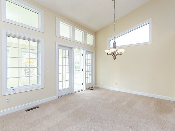Light, bright & inviting, this attractive 3BR, 3BA Villa is move-in ready! Vaulted ceilings thruout the Kitchen, Great Room & Foyer along w/ an abundance of Prairie Pella transom windows create an open design. Wide, custom base & trim, beautiful hardwood floors, & upgraded carpet thruout. Tile surrounded, gas fireplace in Great Room that leads to a lovely Four-seasons room w/ attached 9x20 deck. 1st Floor Mstr Suite & BA w/ dual vanities, soaker tub & shower. Fantastic walk-out basement w/ professionally finished Rec Room that boasts 2nd fireplace, custom cabinetry & many windows. Basement BR, BA & 2nd laundry area. Double doors from basement lead to a 2nd lower deck. Association provides lawn care & snow removal. Great location close to shopping and dining!