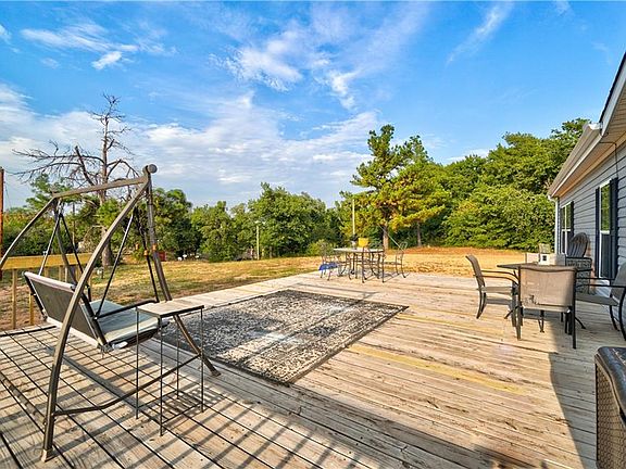 his home is Gorgeous!  Featuring an open and smart floor plan.  The home has 3 Beds, 2 Baths, 2 Living Rooms, study and a 10X12 Storage Shed all on 2.54 Acres.  Large open living room with crown Molding and boast a stone fireplace. . The office is spacious. Master bedroom is huge with a great bathroom. Enjoy the garden tub, plantation shutters and walk in shower. Double vanities and a built in fireplace are the icing on the cake!  A country  Kitchen with Stainless Steel Appliances, pantry, large kitchen island W/breakfast bar and ample Storage.  Enjoy Entertaining with a 2nd living area & large dining room. 2 other   bedrooms . The hall bath is full size Bathroom with a tub/shower combination. The house has utilized every inch of space throughout. Enjoy the peaceful outdoors and enjoy country living , on a beautiful deck to watch those Oklahoma Sunsets! So many updates to this  home and it's move in ready!! New gravel just installed  in the driveway. Don't miss out on this great home!