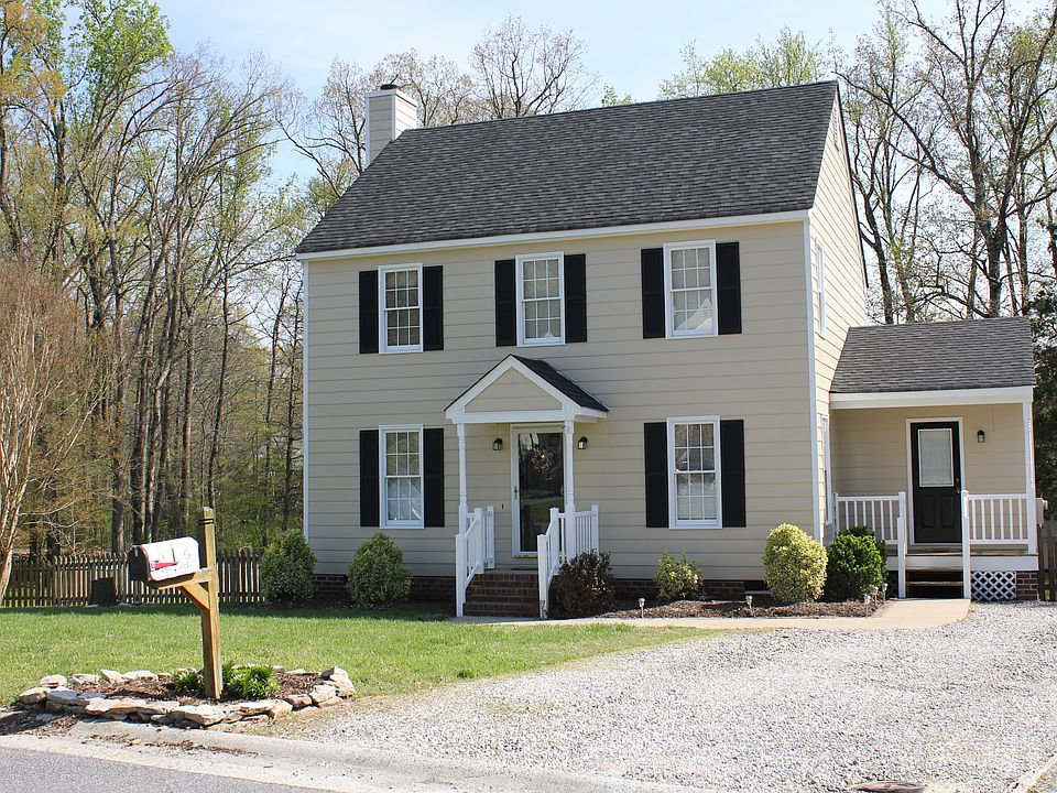 3 BR, 2.5 bath Colonial on large cul-de-sac lot. Roof less than 10 years old. Newly painted exterior. Spacious eat-in kitchen with Granite, Stainless Steel, bay window, ceramic tile. Great Room with wood burning fireplace, ceiling fan, and new laminate wood floors. Master bedroom with Walk-in closet and new carpet. Skylights in both bathrooms upstairs. Walk up attic. Fully fenced back yard with shed. Two tiered deck with side stone patio. Located within two miles of shopping and restaurants.