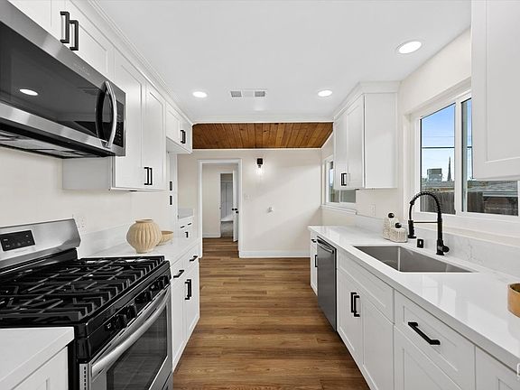 Welcome to this beautifully renovated Northeast Bakersfield charmer, ideally located near Bakersfield College. Thoughtfully updated, this split-wing home offers four bedrooms, two bathrooms, and a host of modern enhancements. The kitchen shines with sparkling quartz countertops, brand-new cabinetry featuring a pantry and coffee bar, and sleek new stainless steel appliances. The bathrooms have been elegantly upgraded with stylish vanities, tiled showers, and sophisticated mirrors. Throughout the home, you will find new wood-like flooring, plush carpeting, fresh interior and exterior paint, and updated light fixtures. Additional features include an indoor laundry area, an HVAC system, a durable composition roof, and a one-car garage. Blending contemporary style with timeless charm, this refreshed home is a true gem, do not miss the opportunity to make it yours!
