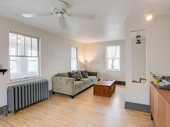 Large, well-lit porch. Den (add a door + closet, and convert into 5th BDR) is quiet. Dining room leads into a spacious kitchen. Large basement includes workshop and canning rooms. Newer boiler from 2011. Fully fenced in. Humongous backyard with space for veggies + fruit trees. Parking slab holds 3 cars. Walking distance to Matt's Bar (home of the Juicy Lucy), Corcoran Park, Powderhorn Park (May Day Parade), South High School, Lake Street shops + restaurants. No closet in the 4th BDR.