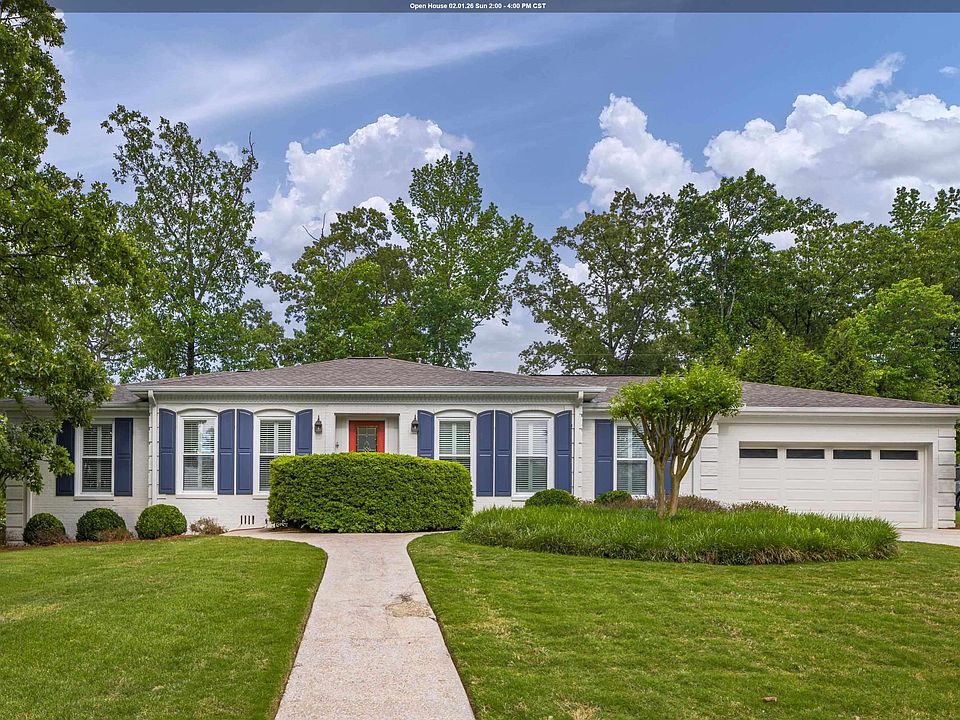 This one level 3 BR/2 BA brick home is a must see. Home features a great living space that includes a formal living room that opens to a dining room, a great kitchen with an eat in area, and a den that has a fireplace. The large master suite has a sitting room and a fabulous bathroom with double vanity and big walk-in shower, as well as a spacious walk-in closet. Two other bedrooms and a nice hall bath with double vanity. The backyard is amazing and is beautifully landscaped with a back patio and a shed for all your storage needs. Home also has a garage and landscaped front yard.