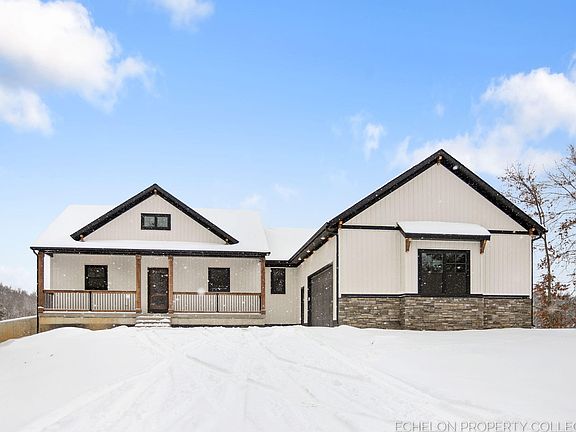 This stunning home has it all! Construction is nearly complete on this nearly 2000sf 3 bed/2 bath ranch home. You're sure to love the fabulous open-concept plan that boasts custom touches throughout. The kitchen features quartz counters, stainless steel appliances, tile backsplash, custom hood vent, a massive pantry with built-in cabinets, shelving, & a beverage cooler. Cozy up by the ledger stone surround fireplace in the living room, or step out onto the huge 20ft covered deck that overlooks the scenic 6-acre wooded lot & shared 6-acre pond. The primary suite boasts gorgeous beams in the bedroom ceiling and a massive tiled shower with dual heads in the attached bath. Additionally, you'll find a large boot bench with cubbies and stained oak bench in the mudroom, tiled tub surround in the guest bath, oversized 2-car garage, and so much more!! This is a must-see home. Call today to schedule a showing! **Pricing for finished basement or pole barn upon request**