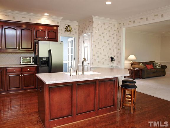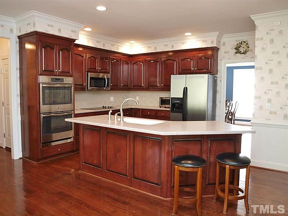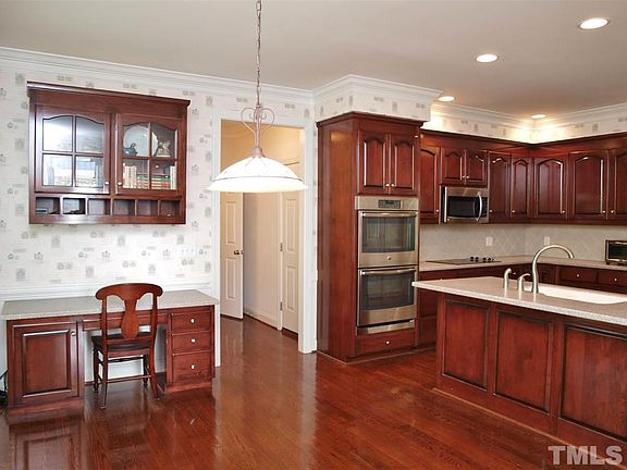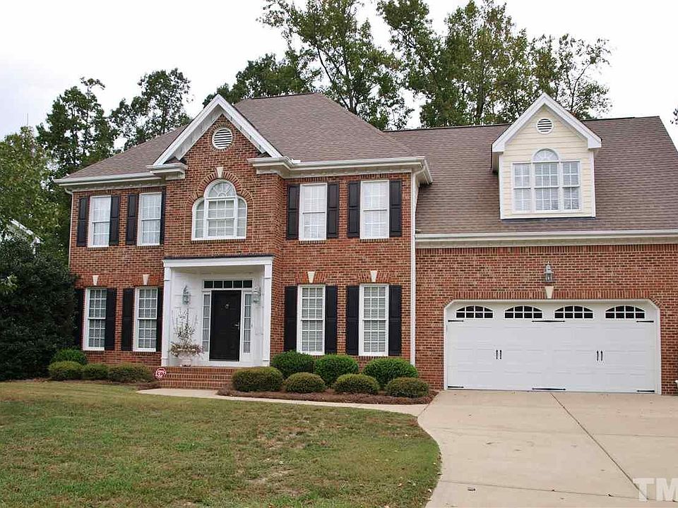 Brick front home situated on golf course lot. 4 Bedrooms + Bonus Room! Open Kitchen features cherry cabinets, double ovens, solid surface counters and stainless steel appliances.Formal Living and Dining Rooms.Master Bedroom has tray ceiling, 2 walk-in closets and great bath with his/her vanities, garden tub and tiled shower. Bonus Room with convenient back staircase access. Deck overlooks 13th tee box and fairway. Walk up 3rd floor attic. 2 car garage. Can join swim and golf club.