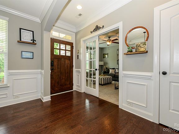 Gorgeous well-maintained home in desirable Woodlands Creek offering 4 bedrooms and 2.5 baths. The large kitchen features granite countertops, gas range, stainless steel appliances, plenty of cabinets, bar seating, upgraded fixtures, upgraded pantry shelving and additional shelving across from pantry. Downstairs private office with french doors, wood plank wall and lighting upgrade makes working from home a breeze. Enjoy quiet evenings on the beautiful upgraded back deck with pergola featuring low-maintenance artificial turf, plenty of flowers and greenery, fenced in yard, and an irrigation system that covers the entire yard. Conveniently located in the Porter Ridge Elementary and Piedmont Middle and High School district. The neighborhood amenities feature a spacious pool, perfect for those hot summer days and sidewalks for a nice evening walk. All windows have added faux wood blinds and cornices, primary has plantation shutters.