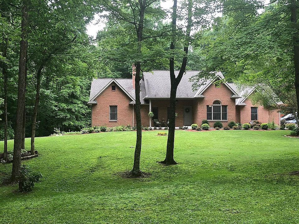 Meticulous brick ranch nestled on 6.77 ac private & tranquil setting, bamboo flooring, vaulted liv rm w/wbfp, cherry cabinets, solid surface counters, SS appls. Master w/barn drs, custom vanity/counter. Relax on screened porch or entertain on lrg patio overlooking lavish landscape, shed, fin LL walkout. 1st flr laundry, firepit, creek, abv grd pool