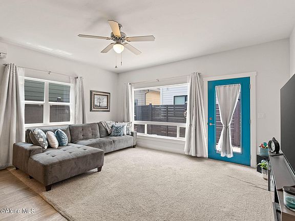 Low maintenance lifestyle in an exclusive gated community opposite the new Atlas Waterfront and Riverstone Communities! Within minutes, you'll have easy access to the lake, river, hiking trails, shopping centers, and top-notch restaurants. Inside you'll find high-end finishes with a modern open floor plan. Your privately fenced patio becomes an ideal haven for a small pet, and enjoying the summer BBQ season. Embrace growing your own vegetables in the community garden, and take a quick stroll to private access of the amazing Centennial Trail. Bid farewell to winter worries, as the HOA takes care of all snow removal! Located a mere 5 minutes from hospitals and a convenient 45-minute drive to Spokane International Airport, this exceptional Coeur d'Alene setting presents a rare opportunity!
