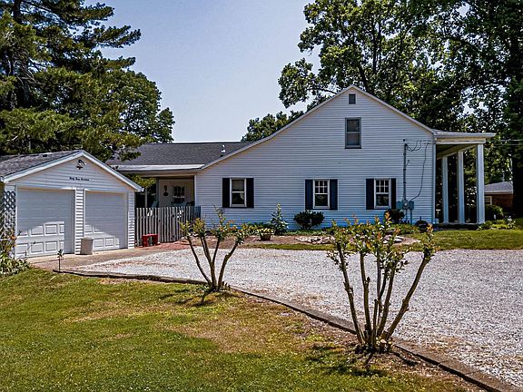 This truly one of a kind home is a blend of all the beauty and charm of the original 1800’s log cabin in the front and modern day sleek with its updated kitchen and baths. There isn’t a bad view on the property. From the covered front porch you can gaze over the neighbor’s meticulously manicured lake with fountain and from the back wrap around porch you overlook the 1 acre + backyard and all its wildlife! Home has been very well maintained throughout the years and with minor customization can easily be turned into your dream home. The main level offers a front family room (an intact, well kept, 1800’s log cabin from the Red Bank Trail), a large dining room with built-in cabinet, a bedroom, recently renovated full bath with tub/shower combo, and fully updated kitchen that is wide open to the brilliant great room with vaulted ceiling, wood burning fireplace, and abundance of large windows for viewing the tranquil yard! Upstairs are two generously sized bedrooms and another full bath (recently updated). The walk-out basement provides enough more space, currently set up as an unfinished laundry room, and could easily be finished out to make a large entertainment area. New grass seed has been spread in the backyard and hay is currently covering the area to keep the seed in place.