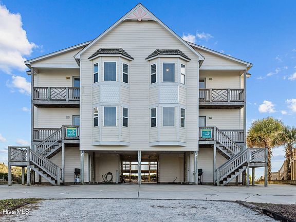 DIRECT OCEANFRONT CONDO 1/2 DUPLEX in Emerald Isle. Enjoy beautiful sunsets in this WEST side unit! Furnished 5BR/5BA with each bedroom having its own full bathroom. Main level offers easy access, full bedroom/ bath with walk out access to the rear patio and stair well to the Boardwalk to the Ocean. The reverse floor plan leads you from the first to second floor where you will be greeted with (3) additional bedroom suites along with a convenient laundry facility in the shared hallway. Making your way to the top floor, enjoy endless ocean views from the living room, dining area, and kitchen, all located with views from the rear of the home. There is also (1) additional suite located on the top level. The property is enrolled in the Emerald Isle Vacation Rental Program. Any accepted contract subject to a 10-day upset bid period. Contract terms take effect after the expiration of the upset bid period. Deed will be transferred as a ''Commissioner's Deed''