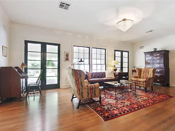 Privacy, security and southern charm in the heart of Alexandria. A complete professional renovation maintains architectural integrity. Natural light streams through 47 windows. Chef's kitchen features custom cabinets, quartz countertops, stainless appliances, Bertazzoni gas range, wall ovens and beverage refrigerator. Huge family room has floor to ceiling windows, wood-burning fireplace, wet bar and half-bath. The family room flows into large dining room and formal living room with a wall of bookcases. French doors open onto a 39'x13' back porch with large brick patio. The BEST house for entertaining. Quiet bedroom wing has 4 large bedrooms and 3 bathrooms with granite, marble and ceramic tile. Master bedroom has 11'x13' dressing room/closet. 12 closets and 2 attics ensure plenty of storage. 907 square foot guest house has living room with wooden cathedral ceiling, complete kitchen, bedroom and full bath with washer and dryer. Perfect space for office or in-law suite.