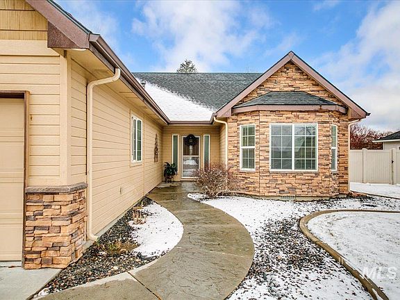 Welcome to this charming home in south Nampa. Upon entering this subdivision, you are greeted by a large pond and tree-lined street, perfect for long walks or jogging. The spacious layout includes a well-appointed kitchen, inviting living areas, and comfortable bedrooms, providing a seamless blend of functionality. This home offers a split floor plan with the 4th bedroom ensuite upstairs. The yard features a covered patio and is surrounded by mature trees. This outdoor space offers shade and privacy, and is perfect for outdoor gatherings. Whether you're looking for a cozy starter home or a savvy investment opportunity, this property offers endless possibilities. With its desirable location, ample amenities, and charm, this home is sure to capture your heart.