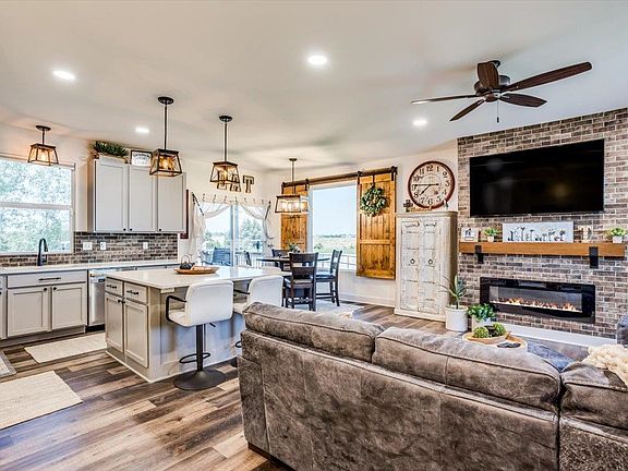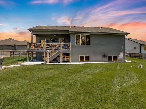 Welcome to your new home in paradise, just a block off the lake! This stunning home is beyond move-in ready. The sellers customized this home to perfection. There are too many upgrades to mention. A brief list would be: -Full privacy wood fence surrounding your lush green oversized lot. -A family room that runs the entire length of the basement that is complete with a very spacious wet bar (refrigerator stays) for all your entertainment needs. What a perfect spot to watch your team win a super bowl. Peek out the dining room window and you'll see the most beautiful sunset out to the West. -One of a kind handcrafted interior wood shutter window coverings are throughout the home. We’d be surprised if you found these shutters in any other home in Kansas. Enjoy the beauty of this 14 month old home that has five bedrooms, three full baths including his and her closets with a custom built in vanity. The living room, dining room and kitchen have an open concept. All the upgraded GE appliances in the kitchen are staying with the home. Enjoy the extra-large square island big enough for a family feast. An LED fireplace in the Living Room is for you to relax and unwind. And the front window in the Living Room gives the views of all the neighborhood kiddos playing in the cul-de-sac. You’ll be glad to know all of the TV mounts have been professionally installed and will stay at the home. The laundry room is on the main level with a tall window for extra lighting just before entering the garage that boasts side mount smart garage door openers, insulation, sheetrock as well as a floor finished with industrial tile. The brand-new landscaping in the front yard was complete in May 2024. You will have sidewalks that go around the entire home. Wander on to the backyard to see a huge fire pit and a composite deck that was extended by the sellers and is larger than most of the decks in this addition. The home is equipped with a sprinkler system and well. The yard is big enough to add a pool, a pool house or an outbuilding of your choice as it spans over 1/3 of an acre. A retractable screen door has been installed on the 8-foot front door and a wooden screen on the garage door so you may enjoy the nice evening breeze. Just a short walk to the end of your new block and you’ll have all the amenities that include full access to the lake. Paddle board, swim, fish or just enjoy the scenery. Better hurry with your offers because this home won’t last...