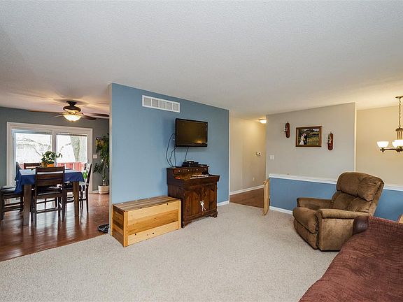 Move in ready home! Well cared for east side home on a tree lined street in a well established neighborhood. Recently updated kitchen & baths; newer carpeting; 3 spacious bedrooms upstairs & beautiful master bath. Brick wood burning fireplace & a large 2 car garage. Nice finished basement w/ large family room. Big fenced backyard, delightful deck & brick patio w/ a fire pit for entertaining. Scott Park, trails, dog park, restaurants & shopping close by. AHS Home warranty included! Welcome Home