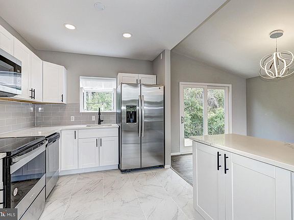 Completely renovated split-level style home boasting gleaming hardwood floors, open floor plan, soaring vaulted ceilings, neutral color pallet, and design-inspired features in every room! Spacious living room graced with lofty windows and an electric fireplace; Dining room allows easy access to the tree-lined backyard; Eat-in kitchen adorned with sleek stainless steel appliances, porcelain flooring, custom cabinetry, decorative backsplash, quartz countertops, breakfast bar, and a garden window; Primary bedroom highlighted with a large closet and exquisite en-suite full bath; Two additional bedrooms and a full bath complete the upper-level sleeping quarters; Travel downstairs to find the expansive family room, flew for a pellet stove, powder room, laundry room, and storage; The exterior features, landscaped grounds, deck, patio, sidewalks, backs to trees and stream; Recent updates: Kitchen, backsplash, quartz countertops, stainless steel appliances, cabinetry, garbage disposal, bathrooms, hardwood floors refinished, lower level lux vinyl flooring, fireplace, sliding door, interior doors, lighting, ceiling fans, paint, electric service panel, HVAC, and more! A MUST-SEE!