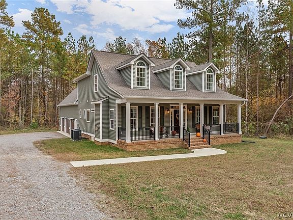 Better than NEW custom home on 20+ private acres in fast growing Goochland county.! One year new with every bell and whistle including 9 ft ceilings downstairs & full front porch. Sunny, open concept living room has beautiful wood floors and gas fireplace. Gorgeous 9 ft quartz island opens to dining area with lots of windows, access to the screened rear porch through four panel sliding doors. First floor primary bedroom has lots of windows, wood floors & gas fireplace. Primary bath with walk in shower, separate tub, dual sinks, and custom closets with vanity table with lighting. Mud room has built in areas and bench. Upstairs you'll find two more bedrooms and a full bath as well as large unfinished area with bath roughed in with shower in place. The beauty of this home doesn't stop here..... oversized finished three car garage provides room for workshop, room for cars and sport vehicles. Generac generator too. Four trails cut for access around the front 10+ acres. Year round stream is just 2 minute walk from the home. Like to hunt, this is the home for you...lots of wooded areas with wildlife. Less than 15 minutes to Goochland area shopping, 25 minutes to Short Pump.